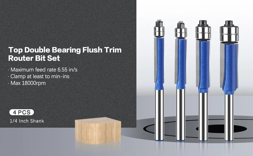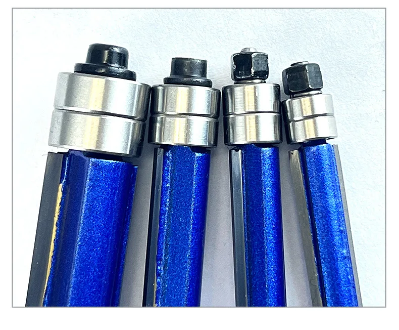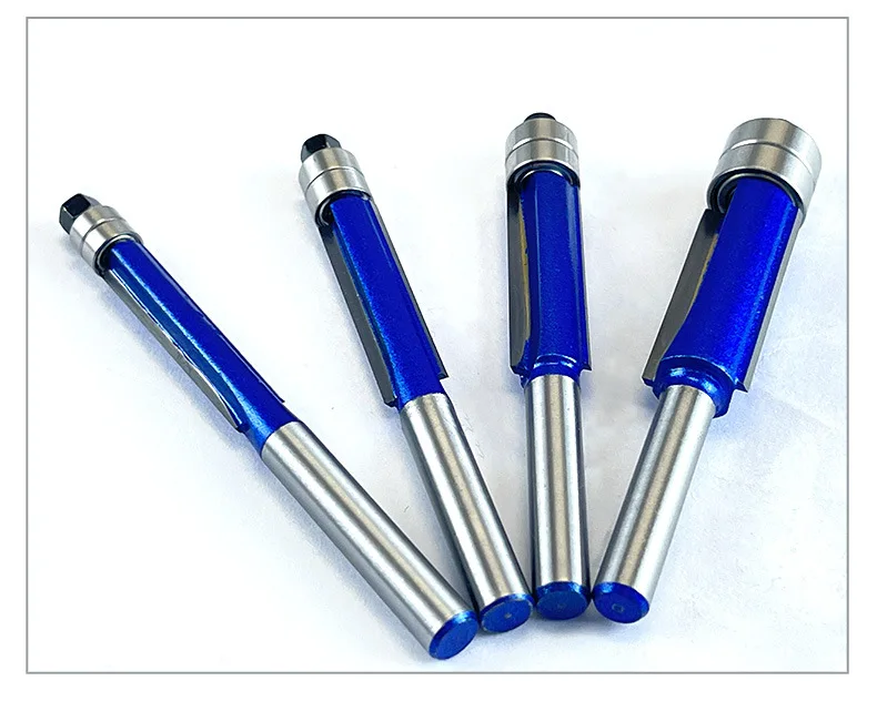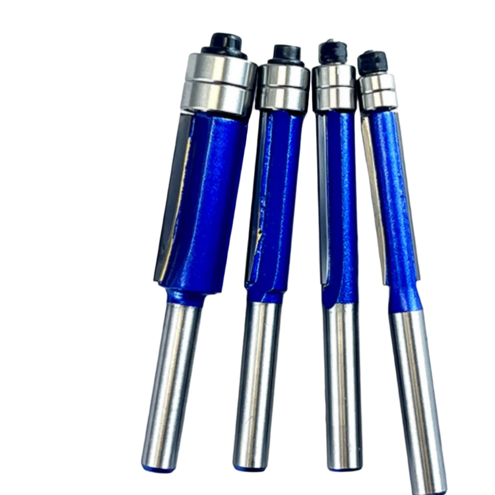 Sparkling Silver-Blue Double Bearing Flush Trim Router Bit - 1/4" 6mm Shank Dual Cutting Blades Electric Accessory Multifunctional Double Bearing Trimmer Tool For Trimmer Machine